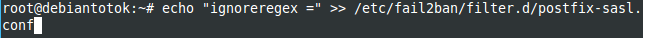 #echo "ignoreregex =" >> /etc/fail2ban/filter.d/postfix-sasl.conf9. Restart service fail2ban dengan perintah
